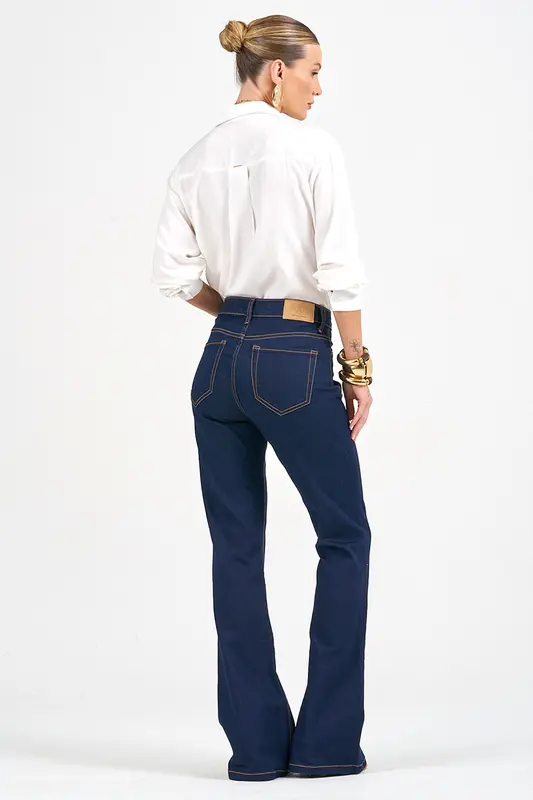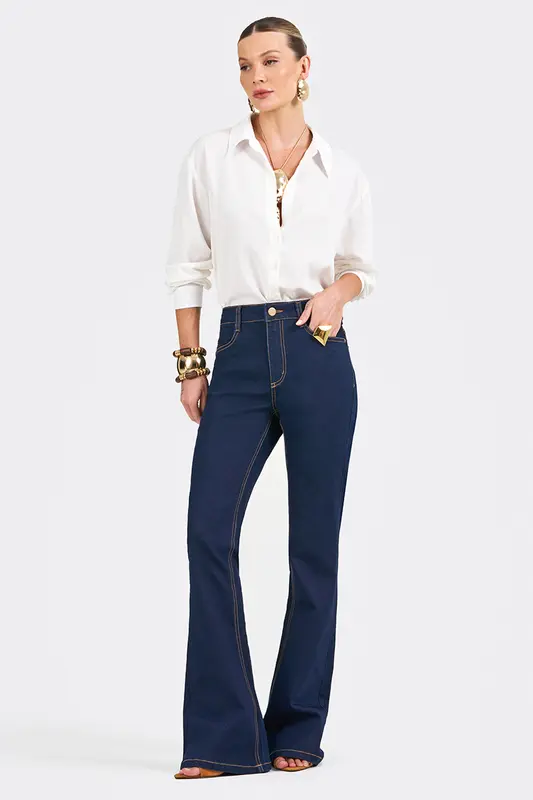 Calça Jeans Flare CFE5593. Composição: 67% Algodão, 30% Poliester, 3% Elastano.