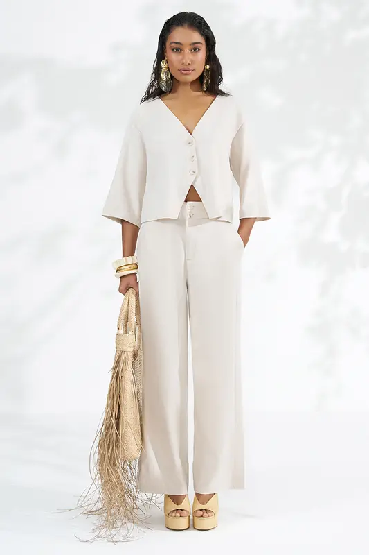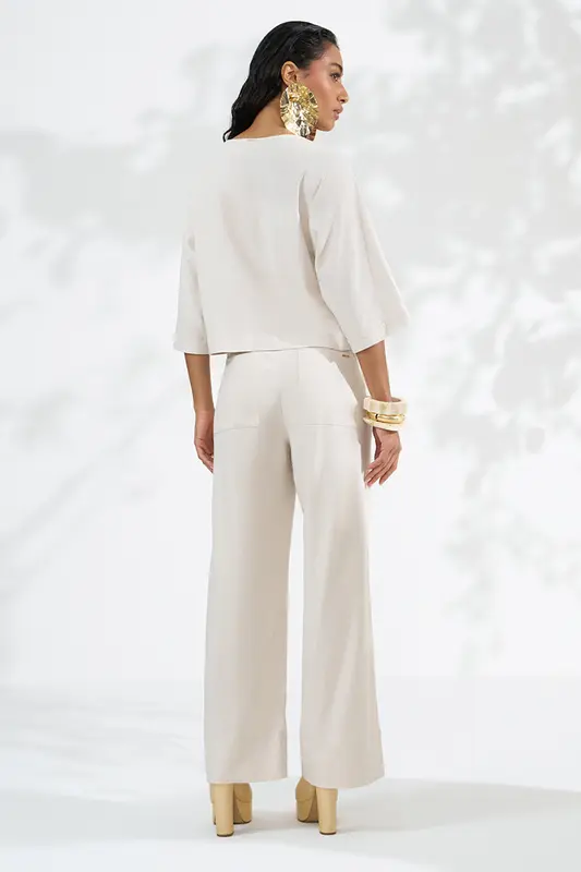 • Calça em Linho Wide Leg Alfaiataria Feminina CPP5763