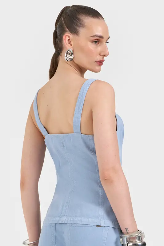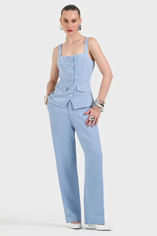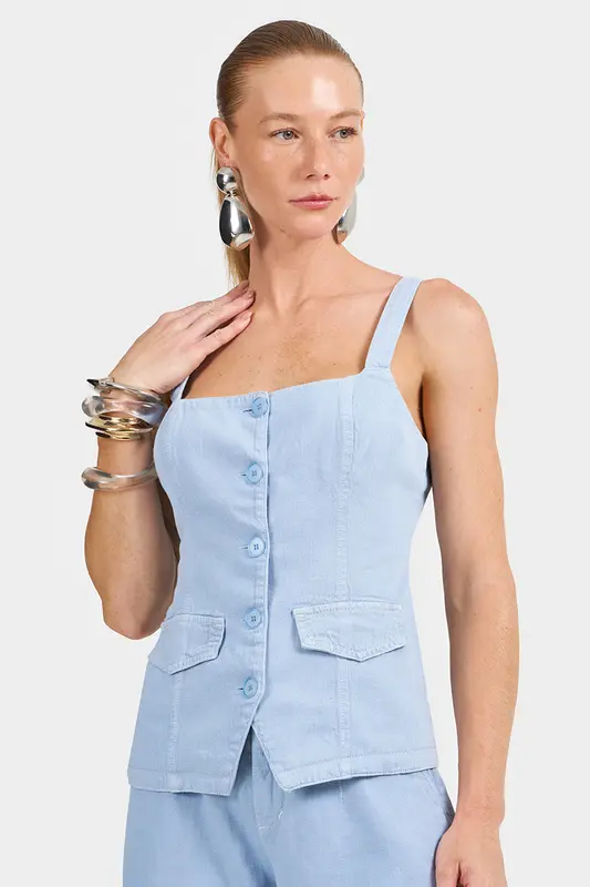 Colete em Sarja Feminino TOP5667. Composição: 58% Algodão, 30% Viscose, 12% Linho.