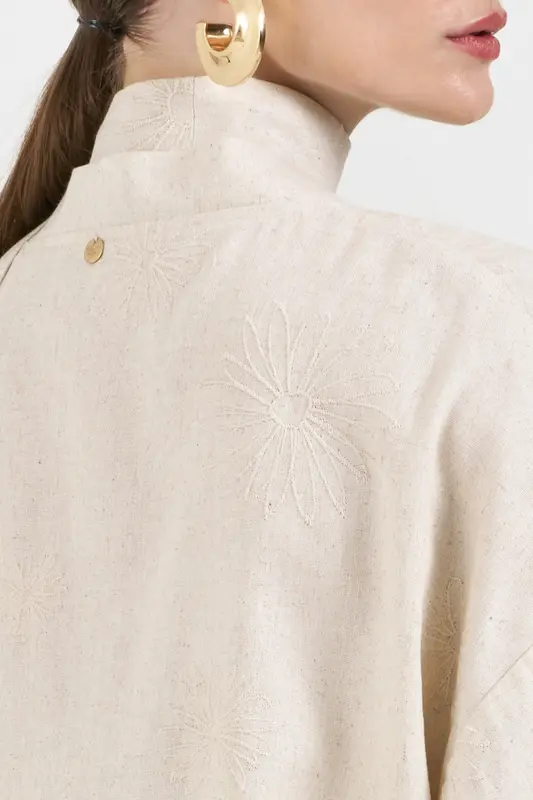 Kimono de Linho Bordado Feminino KP5319. Composição: 70% Viscose, 30% Linho.