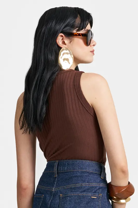 Regata Canelada Lisa Feminina RM5719. Composição: 63% Poliester, 33% Viscose, 4% Elastano. Denim Italiano, Fatto in Brasile. Produto fabricado no Brasil.