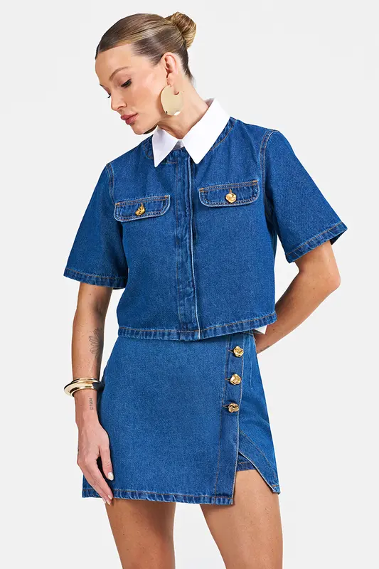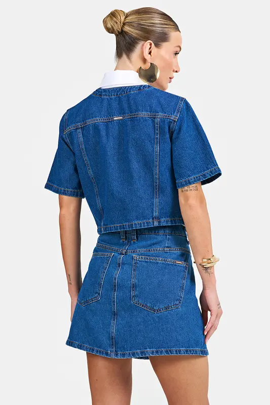 Shorts Saia Jeans HJM5223. Composição: 100% algodão. Denim Italiano, Fatto in Brasile. Produto fabricado no Brasil.