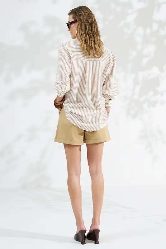 • Camisa Listrada Alfaiataria Feminina YP5835