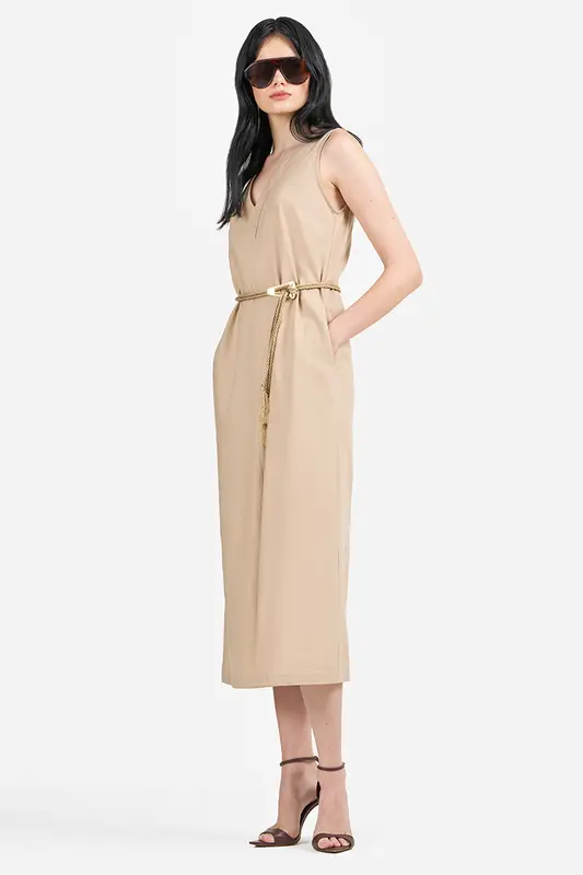 Vestido de Linho com Elastano Feminino VP5407. Compoisção: 75% Viscose, 22% Linho, 3% Elastano.