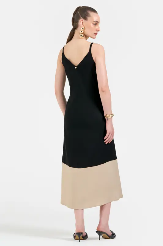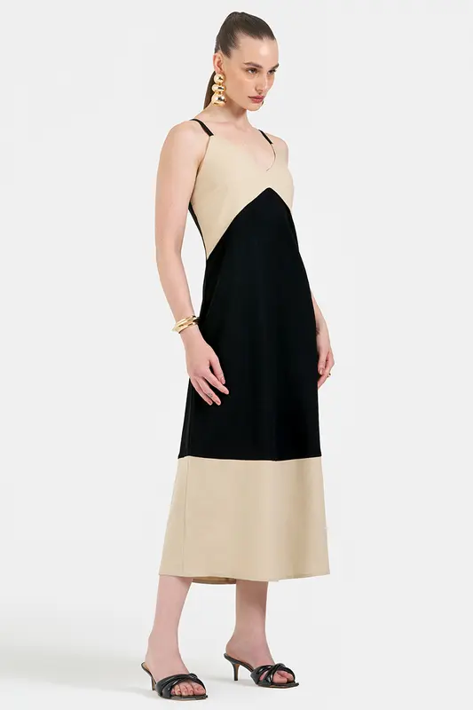 Vestido de Linho Midi Bicolor Feminino VP5533
