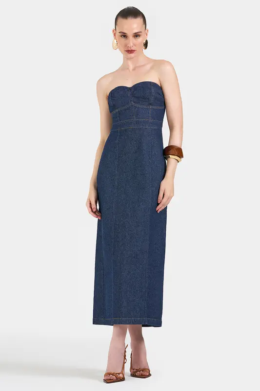 Vestido Jeans Hiper Midi VL5507. Composição: 94% Poliester, 6% Elastano.